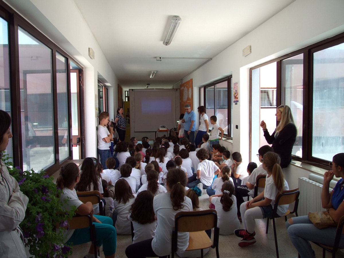 Lungo il viaggio alla conoscenza del mare, filmati, esperimenti, acquario, hanno condotto i ragazzi alla conoscenza dell’ambiente marino mediterraneo. Con l’aiuto di un piccolo acquario didattico, di una videocamera, di uno stereomicroscopio e un proiettore gli alunni hanno esplorato i fondali dell’acquario e proiettati su grande schermo hanno conoasciuto da vicino i pesci, le spugne, gli anemoni, gli spirografi, i crostacei, le stelle marine, i molluschi, i coralli. Il biologo marino Luigi Esposito ha mostrato i microorganismi del plancton e ha parlato di catena alimentare dal vivo dando il cibo agli organismi dell’acquario: il fitoplancton per le spugne, lo zooplancton per i coralli, anfipodi e gamberi per i pesci. La conoscenza del mare è avvenuta anche attraverso il contatto con gli organismi marini vivi: stelle marine, ricci e molluschi, conchiglie, rizomi e foglie di posidonia. Infine sabbia e gusci di molluschi ma anche pezzi di plastica, palline di catrame e tappi, hanno introdotto l’argomento dell’inquinamento marino.