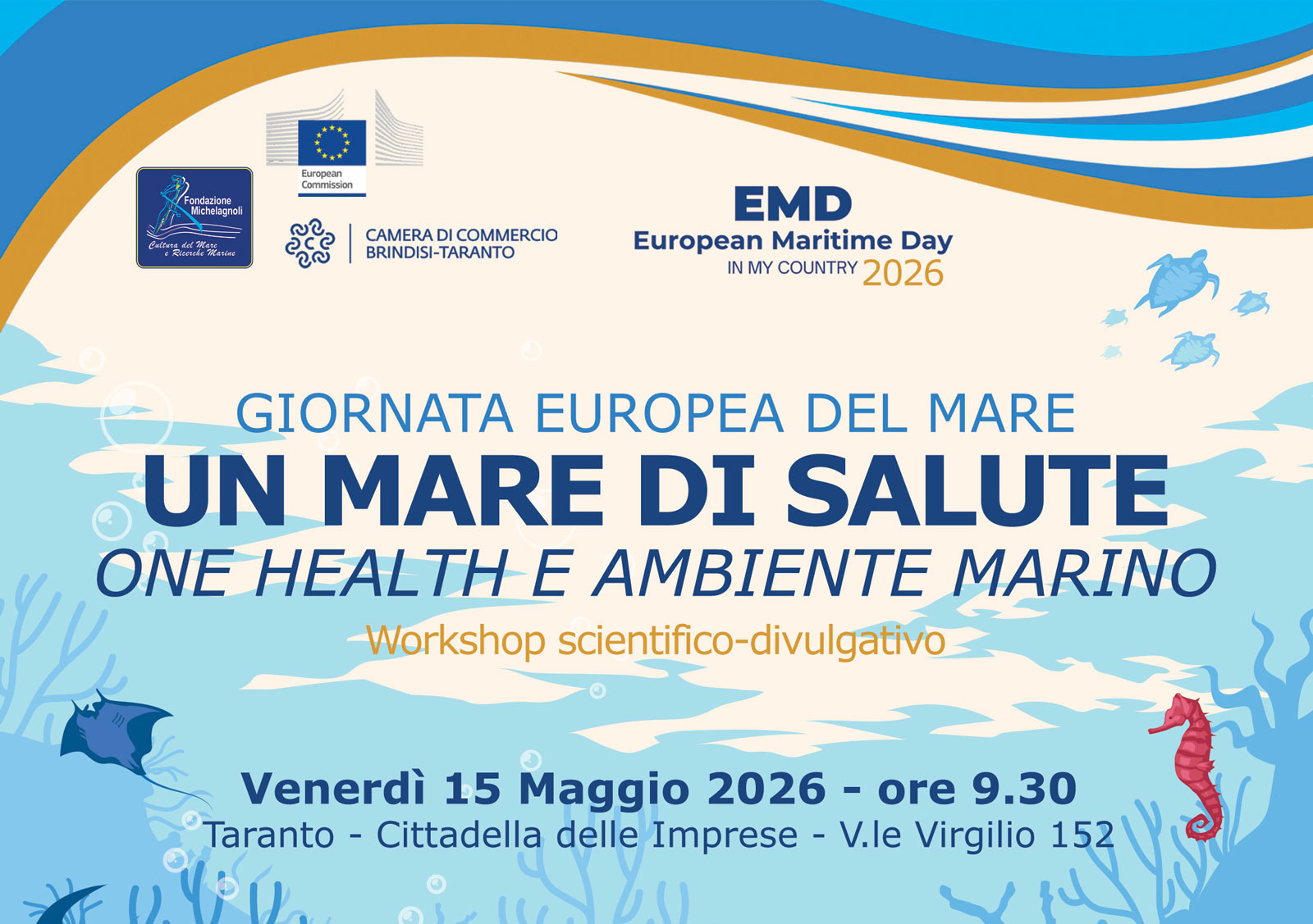 Il 15 maggio la Fondazione celebra la Giornata Europea del Mare 2026 con il workshop “Un mare di salute. One Health e ambiente marino”.