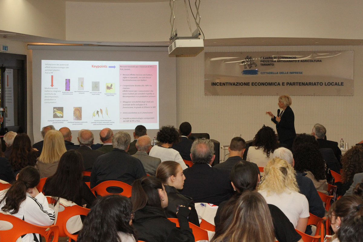 A seguire Silvia Fraissinet, ricercatrice dell'Università del Salento, nel suo intervento su Nanoplastiche e Mitili, dopo aver posto l’accento sulle loro preoccupanti quantità e l’alta variabilità polimerica, ha parlato dei possibili scenari di biorimediazione nel Golfo di Taranto come nuovi approcci mirati a contenere e minimizzare il problema delle NPs.