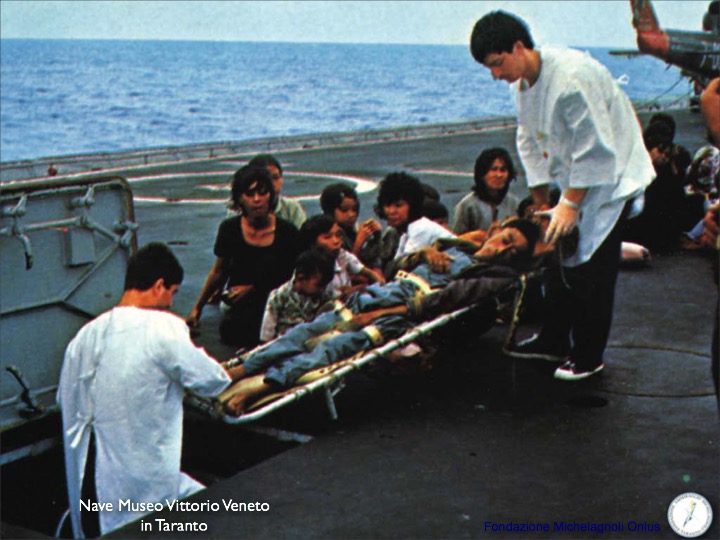 E allora ricordare la missione di soccorso del 1979 di Nave Veneto ai profughi vietnamiti che fuggivano dal loro Paese, è il modo migliore per salutare la nostra bella nave che nell’allontanarsi per sempre ci lascia ancora nuove emozionanti suggestioni.